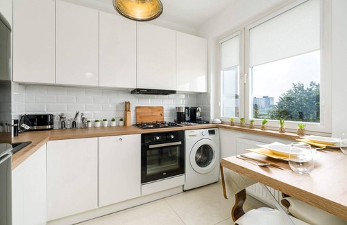 This comfortable studio in Poznań for two offers functionality and stylish, elegant decor. Nature lovers can walk to a beautiful park in 8 minutes to relax in the fresh air.