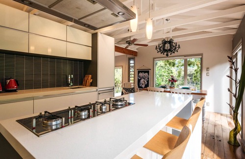 Kereru has two bedrooms both with Queen-sized beds, a large bathroom and a modern kitchen to bring out the gourmet chef in you.