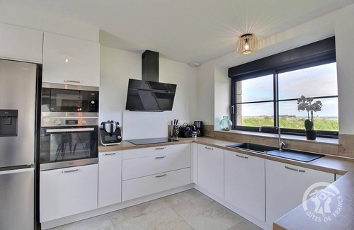Your vacation rental, arranged on 3 levels, includes: On the ground floor : Living room (wood stove) communicating with the well-equipped fitted kitchen even offering a small sea view, laundry room, 1 bedroom with TV and its private bathroom (shower and bathtub) (1 200x200 bed), 1 separate toilet. 1st floor : 3 bedrooms with their private bathroom (shower). (2 twin 90x200 beds) (1 160x200 bed) (1 160x200 bed), 2nd toilet with hand basin. 2nd Floor : 1 bedroom (2 twin 90x200 beds) 1 dormitory room (3 90x200 beds), bathroom (shower) and toilet Outside : Large enclosed courtyard, beautiful terrace, landscaped grounds in front, shelter for cars and bicycles with electric charging socket. At the rear, another terrace offering a sea and lawn view. 200 m from the sea, in the countryside, near artichoke fields, this stone farmhouse has just undergone a superb renovation, and the result is successful. A large, bright living room, spacious bedrooms with excellent bedding with private bathrooms, well-kept landscaped grounds where you can relax, play in the open air or lounge whatever the time of day. It is truly the perfect holiday home for getting together with family or friends. From the property, you can see the sea: put on your sneakers and in less than 5 minutes, you are there, and there, the landscape is as breathtaking as whether by high or low tide. You will also love discovering the leaning bell tower of Saint Gonéry, the Gouffre, the small streets where it is very pleasant to stroll, even by bike. You will still have to leave this pretty town to discover all the surrounding areas. Tréguier, a pretty town of character 9 km away, Penvenan 6 km away, Perros Guirec 22 km away.