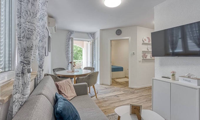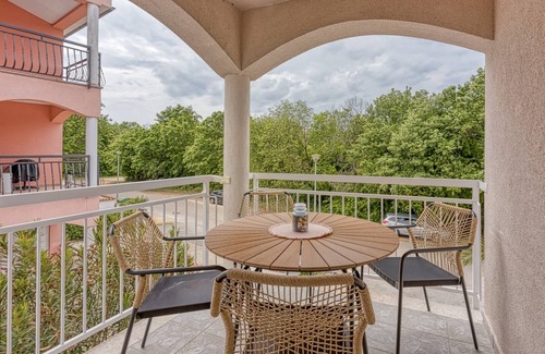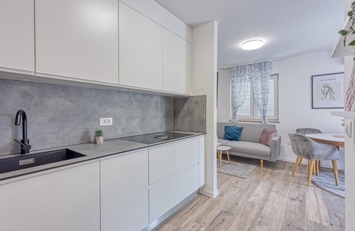 Newly renovated and modernly equipped apartment for 2–4 people in the village of Kukci, not far from Poreč. The apartment consists of a fully equipped kitchen, a living room with a dining room, a bathroom, and a balcony. One bedroom has a double bed and the other bedroom has two single beds. Bed linen, towels, Wi-Fi, air conditioning in all rooms, and free parking in front of the apartment house are available to guests. The apartment is located on the 1. Floor. Pets are not allowed. Spend an unforgettable vacation with your family or friends in this beautifully decorated apartment, just 2.5 km from the beach and the center of Poreč.