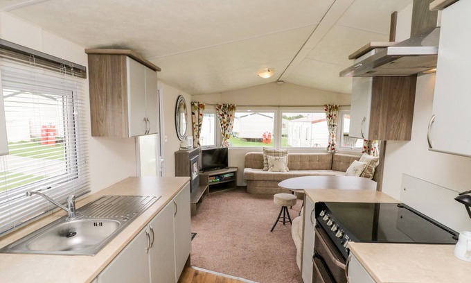 Amenities: Gas central heating with electric fire. Gas oven and hob, microwave, fridge. Smart TV and WiFi. Fuel and power inc. in rent. Bed linen inc. in rent. Off-road parking for two cars. Decking with furniture. Two well-behaved pets welcome. Sorry, no smoking. Shop 1.3 miles, pub 0.4 miles, beach 1 mile. Note: On-site facilities include: soccer school, sports dome, high ropes course, amusement arcade, multi-sports court, kids’ club, indoor swimming pool, crazy golf course, Boathouse Bar & Restaurant, convenience store and launderette. Note: passes can be purchased separately from the main reception at an extra cost to use some of the park facilities Towels are not provided.