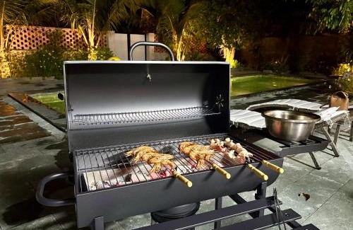 BathroomHairdryer, Towels/Sheets (extra fee), Toilet, Shower cap, Shower, Walk-in shower, Bathtub or shower, Slippers, Free toiletries, Shared toilet, Body soap, Private bathroom, Shampoo, Toilet paper, Toothbrush, TowelsMedia & TechnologyCable channels, Pay-per-view channels, Flat-screen TV, TVGeneralIron, Fire extinguisher, Ironing facilities, Fan, Smoke Alarm, Hardwood or parquet floors, Tile/Marble floor, Mosquito net, Trash cans, Air conditioningOutdoorsPatio, Outdoor dining area, Balcony, Terrace, Outdoor furniture, Private pool, BarbecueKitchenStovetop, Kitchen, Microwave, Dining table, Coffee machine, Washing machine, Kitchenware, Cleaning products, Wine glasses, Electric kettle, Oven, RefrigeratorLiving AreaSofa, Desk, Dining area, Sitting areaViewInner courtyard view, Pool view, View, Quiet street view, Garden viewBedroomWardrobe or closetAccessibilityEntire unit located on ground floorBuilding CharacteristicsDetachedRoom AmenitiesNon-feather pillow, Sofa bed, Adapter, Socket near the bed, Drying rack for clothing, Clothes rackFood & DrinkBottle of waterPhysical distancingSingle-room AC for guest accommodationCleanliness & disinfectionHand sanitizer |