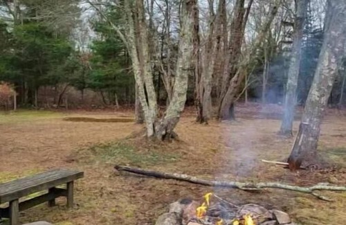 House sits on an acre of land with a nature reservation behind it. House is on a very peaceful street although just minutes from downtown (1 mile walk if you're so inclined!). Firepit and basketball court are all available for your use.