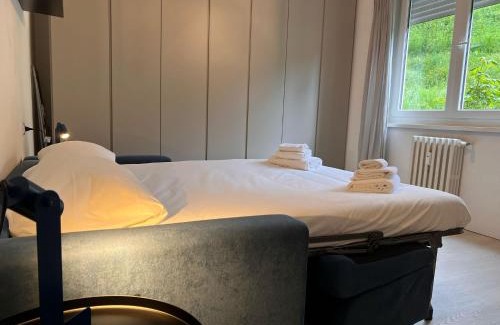 Kibilù - Elegant apartment Lake View - Balcony & Parking offers accommodations in Luino, 14 miles from Lugano Exhibition Center and 16 miles from Swiss Miniatur. Guests can benefit from a balcony and a terrace. Free Wifi is available throughout the property and Lugano Station is 13 miles away. The spacious apartment is composed of 2 bedrooms, a living room, a fully equipped kitchen, and 2 bathrooms. A flat-screen TV is available. The accommodation is non-smoking. Villa Panza is 17 miles from the apartment, while Piazza Grande Locarno is 23 miles from the property. Milan Malpensa Airport is 35 miles away.