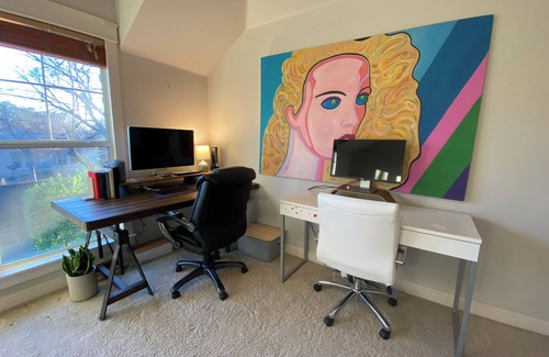 Our two-story home, 3 bedrooms, with an amazing backyard, upstairs playroom, and spacious layout is the great spot to spend a Texas spring and summer. We are 5 min walk from shops, coffee, & food! 10 min drive to downtown Dallas.