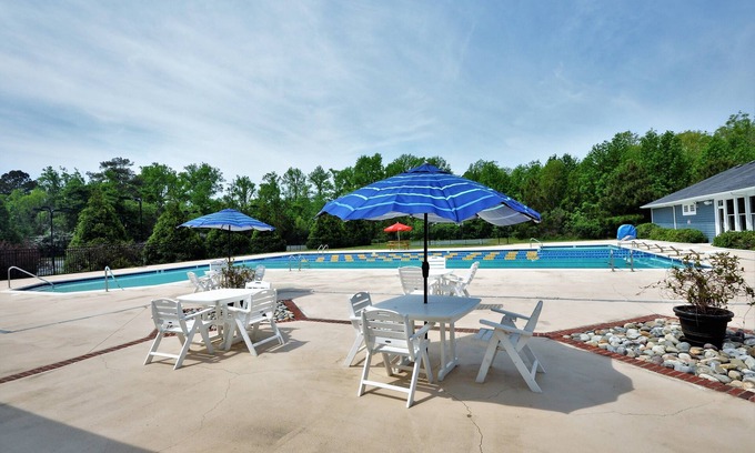 Yes, this Harbinger house has a swimming pool. Check the Facility Overview section for details about the pool and other available facilities.