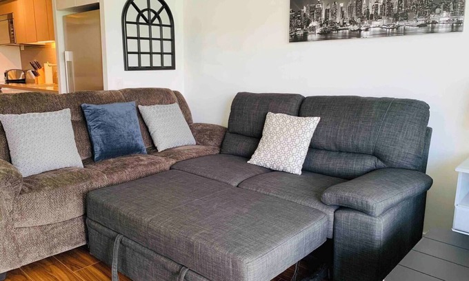 Comfy 1 King bed and a sofa pull out. The comfort of downtown living with the essentials of home. A condo fresh with all the essentials . Enjoy this suite for a fraction of the cost of a hotel. You’ll love my place because of the comfy bed, the full kitchen and the coziness. Light cleaning once per week, you MUST give access to the maid services.