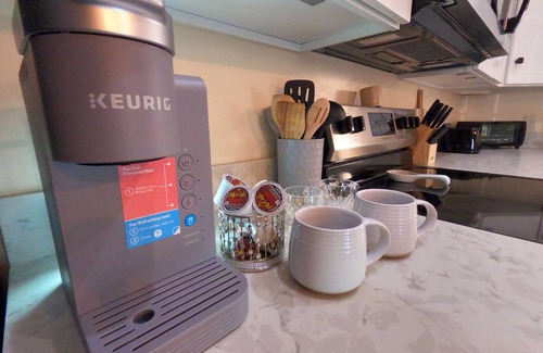 bedrooms, two bathrooms, a fully stocked kitchen, and a comfortable living room. Relax