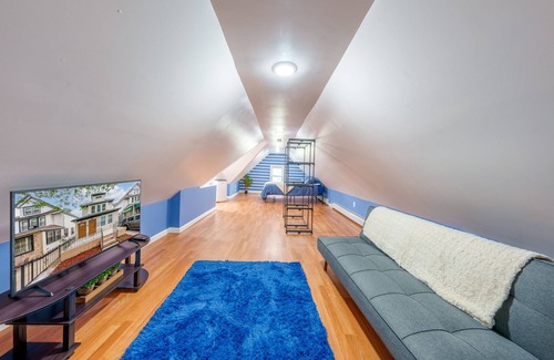 Welcome home! Whether you're coming home after a day of work, enjoying an adventure, or just wanting an awesome staycation, you will feel relaxed and at home here.This is a newly renovated and newly furnished private 2 bedroom apartment in a house. The apartment has a bathroom, kitchen, living room, 2 Bedrooms and a big attic. You are welcome to use the kitchen, which is fully stocked with a stove/oven and everything you need to cook such as pots, pans, plates, cups, glasses, bowls, eating utensils, coffee machine, kettle, refrigerator, microwave, etc. The living area has an eating area, a comfortable leather sofa to relax on while you watch Disney + or HBO max on a 55 inch hd tv. Bedroom 1 features a queens sized bed and a 40 in hdtv. Bedroom 2 has a twin bed. The attic has a king sized bed , a twin futon and a 4in hdtv. There’s also an iron and board available for use. This apartment is private so you won’t be sharing with anyone. Free street parking is always available.