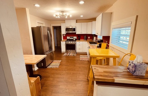 Welcome to the Whimsy House! Enter the yellow front door to a world of comfort and color. Enjoy a spacious primary bedroom with a king bed and 55" TV, a comfortable living area with a 65" TV, a fully equipped kitchen, and a laundry room. The second bedroom is perfect for the kids with a queen bed and 32" TV. Enjoy blackout curtains in the bedrooms and living room. Entire house is newly renovated. Just a 15 min walk from campus corner and 10 min walk from The Mont! Book your stay today!
