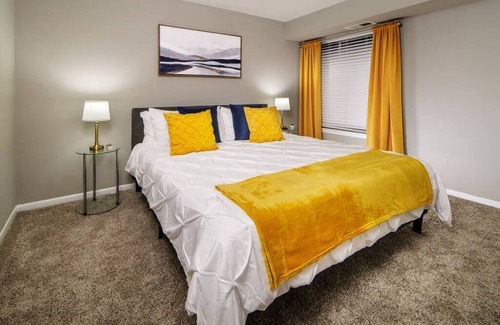 Entire 2BR apartment in White Marsh During this time, it is very important to provide a clean and safe space for all of our guests while away from home. Our cleaning teams follow CDC's sanitization plan, and have a UV-C air sanitizer to provide additional protection against the spread of illness. Enjoy a beautifully designed, fully-furnished apartment located in a sought-after location. ★This apartment includes★ → 2 King beds and 1 sofa bed with an upgraded mattress → Fully equipped kitchen → 55" & 43" Roku TV w/ Netflix & YouTube TV → 1 Gigabit internet connection → Keyless Entry System → Free on-site parking → Washer/Dryer In-Unit → Pack-N-Play (at request) ★The kitchen comes with everything you may need while on the go★ → Pots → Pans → Dishes → Utensils → Virgin Olive oil → Salt + Pepper → Coffee → Tea → Creamer → Sugar (and substitute) ★Area★ → Located in White Marsh → Easy access to I-695 → Near restaurants and movie theater (The Avenue) → White Marsh Mall (2.9 miles) Will community via chat when needed. Public Transportation Lyft Uber Taxi