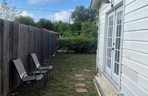 Private Master Suite bedroom with private french door entrance that is perfect for a couple, small family or a professional traveler. It has a private patio area where you can sit and enjoy the fresh air or watch the moon from. Entire Master Suite is yours, no shared areas. It comes with a king size bed (memory foam mattress), microwave, minifridge, coffeepot, 2 stove tops, toaster oven, pots, pans, and dishes, washer and dryer (under covered patio). Close to malls, running trails, public city park, museum, airport, expressway, hospitals, shopping, dinning, public pool, public transit, etc. McAllen’s annual 4 th of July Fireworks display and Christmas Float Parade can be seen from the front yard or get front row view by just walking a few steps to the street.