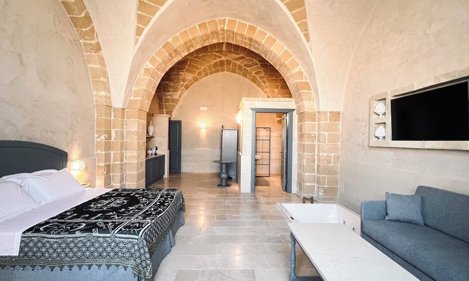 King Room with Private Jacuzzi in Historic House - Borgo Don Ciccio is located in Felline. King Room with Private Jacuzzi in Historic House - Borgo Don Ciccio provides accommodation, featuring Air Conditioner, Parking, TV, among other amenities. This Bed & Breakfast features Air Conditioner, Parking, TV, to make your stay a comfortable one.