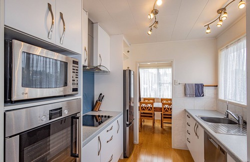 This Raetihi holiday home sleeps up to six guests across three bedrooms. Two bedrooms enjoy a king and queen bed, while the third provides two bunks and a variety of games, puzzles, wall-mounted TV and even a Playstation 3 with a handful of games! A stylish tiled bathroom with a shower and bath will ensure you stay refreshed and rejuvenated throughout your stay.
