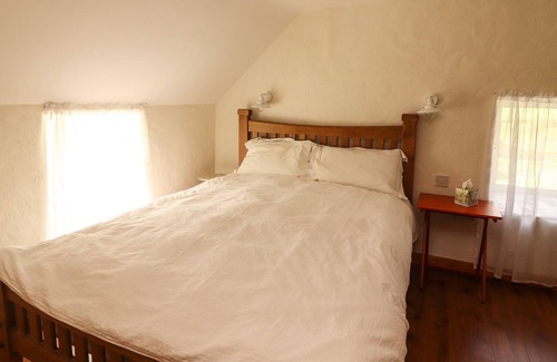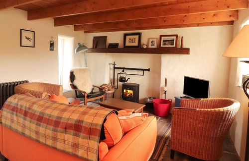 Amenities: Oil heating with solid fuel stove. Oil-fired range with 2-ring hob and two ovens, microwave, fridge/freezer, dishwasher, washing machine, tumble dryer, TV, DVD player and a selection of books, games and DVDs. Fuel, power and initial logs for stove inc. in rent. Bed linen and towels inc. in rent. Off-road parking. Enclosed garden with lawn and patio with bench and swing seat. Sorry, no pets and no smoking. Shop 5.6 miles, pub 4.6 miles. Note: There is an external shower and drying area to clean up after the beach. Note: As all the bedrooms are reached via a spiral staircase, the house is not suitable for toddlers or those with limited mobility. Note: There is no wifi at the property, however there is good mobile signal