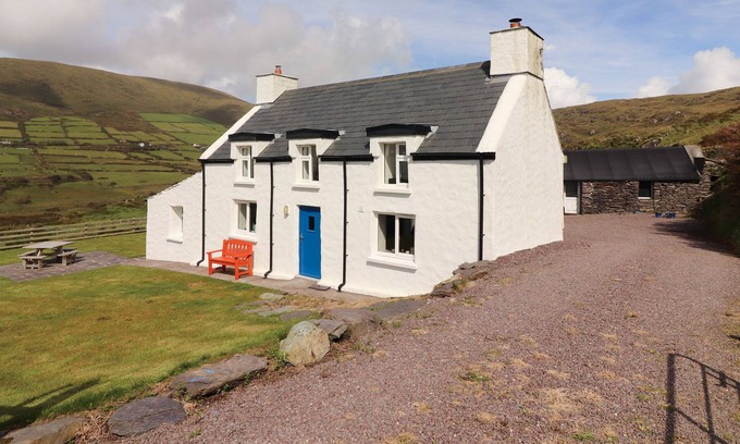 This detached cottage rests near Ballinskelligs, County Kerry and can sleep five people in three bedrooms.