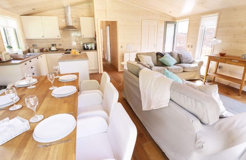 Kingfisher is a wooden-built lodge set outside Ross-on-Wye in Herefordshire. It has three king-size double bedrooms (can be made into twins upon request) one with en-suite shower room, there is a family bathroom, the lodge can sleep six people. It also comes with an open plan living area with a kitchen, dining room and woodburning stove. Outside is off road parking for two cars and a decking area with furniture and hot tub. Kingfisher is a classy lodge in a great location. Note: This owner requires a Good Housekeeping bond of £250. Please note: This property accepts Friday and Monday check-ins only.