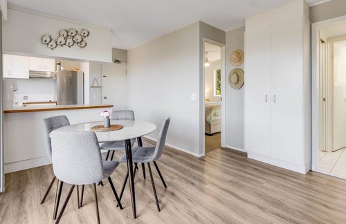 It will accomodate 4 guests in 2 Queen beds, with a two-way bathroom off of the main bedroom. The living area offers a light and airy space with TV and air-conditioning. The kitchen is self-contained with a dishwasher, microwave coffee machine and soda stream. The unit is fitted with a water filter for all taps in the bathroom and kitchen.