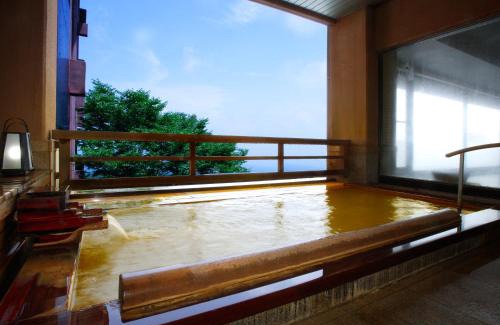 BathroomShower, Bathtub, Hairdryer, Free toiletries, Toilet, Private Bathroom, Slippers, Bathtub or shower, Bidet, Towels, Toilet paper, Toothbrush, Shampoo, Conditioner, Body soap, Shower capGeneralSafe, Air conditioning, Heating, Trash cans, Smoke Alarm, Key accessMedia & TechnologyTV, Telephone, Flat-screen TVKitchenRefrigerator, Electric kettleBedroomWardrobe or closetViewMountain viewAccessibilityUpper floors accessible by elevator, Accessible by elevatorRoom AmenitiesClothes rack, Drying rack for clothing, Yukata, Tatami (traditional Japanese flooring)LayoutWindow |