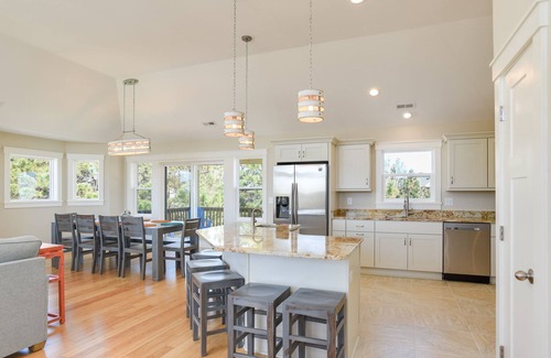 Welcome to Kiss Me Salty! This soundside Corolla vacation home sits high in the quiet community of Monteray Shores. Located near great, local dining, shopping, and historical attractions like the Currituck Beach Lighthouse, you’ll be sure to discover something new this vacation! When you’ve had enough time at the beach, come back to Kiss Me Salty and splash around in your private pool or play a game of foosball in the game room. If you want to stay active on your vacation, the Monteray Shores clubhouse awaits you with fitness rooms, basketball courts, tennis courts, a large outdoor pool and so much more! There’s even a private boat dock with kayak rentals and guided tours just down the street. The spacious kitchen awaits the chef in your crew to prepare tasty, home cooked meals!. The open floor plan between the kitchen, dining room, and living rooms provides the perfect space for everyone to get together after a long and fun filled day on the Outer Banks! Your Outer Banks vacation begins at Kiss Me Salty so book your stay today!