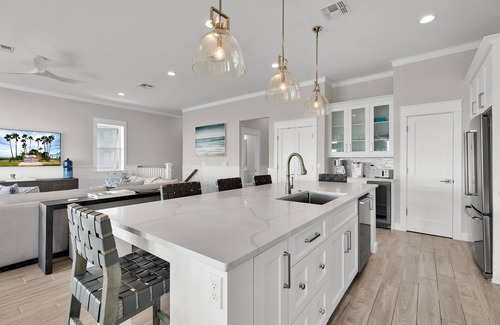 Bayside Luxury Home in the middle of The Shores! This home has everything you could hope for in a South Padre Island vacation experience. Location, luxurious designer comforts & furnishings, The Shores Subdivision amenities including community park, pool, tennis, pickleball, gated entries, private beach access and more. The Shores' beach access is a few minutes' walk away from the home.