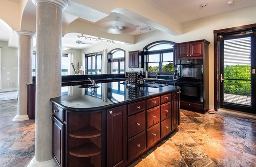 KiToCay boasts a panoramic oceanfront living area with spectacular views, plus an over-the-water deck with a tiled cabana. Guests have compared the views and feel of this home with that of being on the bow of a cruise ship with the open ocean enveloping your senses from virtually every direction.