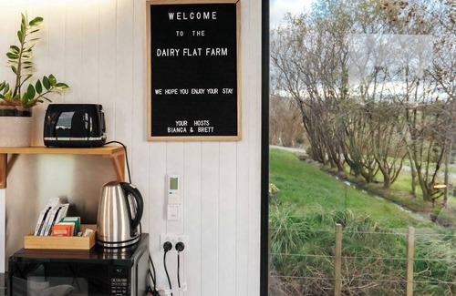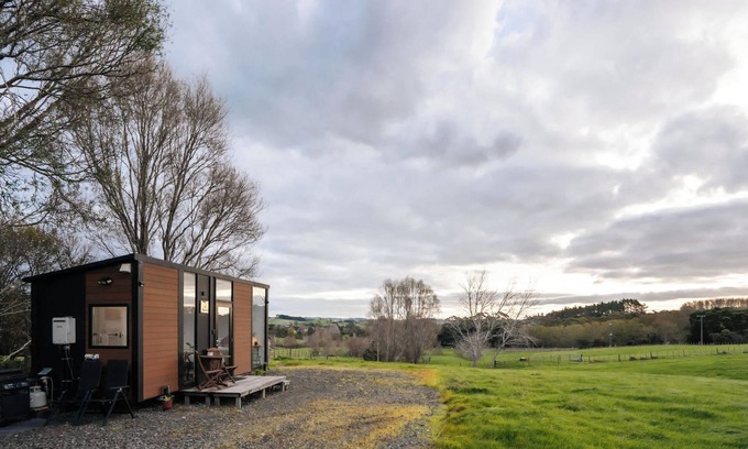 Experience the "Kiwi Farm Life" at Kiwi Farm Cabin 1 by Tiny Away, surrounded by picturesque sunset views and stunning green pastures. Our retreat provides all modern amenities, allowing for an eco-friendly retreat in the rustic and suburban surrounds of Waitoki.