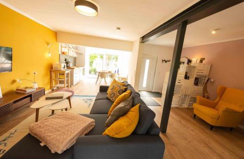 Food & DrinkTea/Coffee makerBathroomPrivate bathroom, Bathtub or shower, Toilet paper, Hairdryer, Shower, Bathtub, Towels, Walk-in shower, ToiletMedia & TechnologyFlat-screen TV, Satellite channels, TV, Streaming service (like Netflix)KitchenDining table, Washing machine, Microwave, Wine glasses, Toaster, Oven, Kitchen, Dishwasher, Coffee machine, High chair, Refrigerator, Kitchenware, Electric kettle, Cleaning products, KitchenetteLiving AreaSitting area, Sofa, Dining areaGeneralHardwood or parquet floors, Interconnecting room(s) available, Private entrance, Key access, Smoke Alarm, Fan, Trash cans, HeatingViewGarden view, ViewBedroomChildrens' cribs, Wardrobe or closet, LinensOutdoorsTerrace, Outdoor furniture, Outdoor dining areaAccessibilityRoll-in shower, Entire unit located on ground floorBuilding CharacteristicsSemi-detachedRoom AmenitiesSofa bed, Socket near the bed, Clothes rack, Drying rack for clothing, Non-feather pillowLayoutWindow |