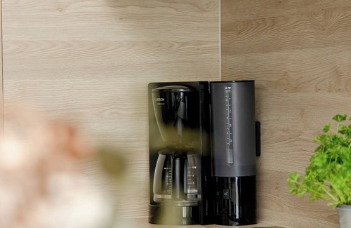 Induction hob, oven, electric kettle, fridge with freezer, coffee machine, dishwasher, set of dishes, kitchen utensils