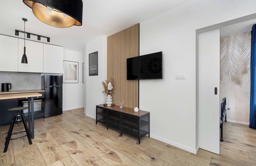 Functional and modernly furnished apartment for 4 people. Separate bedroom. Ideal for friends and small families. Great location in the center of Katowice. Fully equipped kitchenette and bathroom. VAT invoice can be issued upon request. Pets are welcome (for an additional fee).