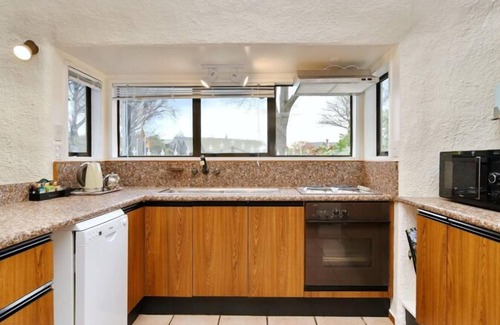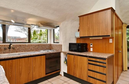 Koepel House was built in the 1980’s and is a very unique dome house featuring 2 spacious domes joined together. The domes will surprise you with their generous space inside, kitchen, dining and living is all open plan and the second dome features the bathroom and 2 bedrooms. This feature full unique home is one level, easily accessible with fully tiled kitchen and living area the whole property has a quite a mediterranean feel. Enjoy the sun drenched private courtyard for your break away from the norm. Very handy to the airport with all the amenities of Spitfire square for you dining out needs. This is a must stay for your break away.