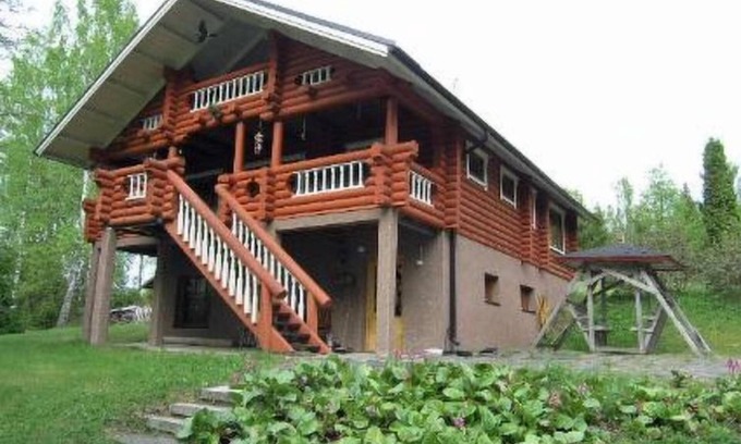Log cottage on three floors, built in 1995, on the middle floor living room, kitchen and dining area, hallway, bedroom with double bed, utility room, covered terrace.