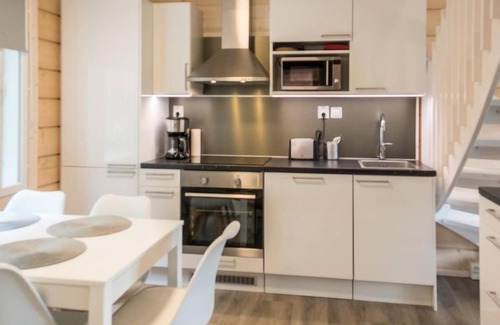 Air source heat pump, Wi-Fi. Children's equipment is delivered separately upon request (travel cot, high chair for a baby and potty). Child safety gates at the top and bottom of the stairs. Equipment for invalid people: ramp for wheelchair on the outside stairs, wide doors to the washroom and bedroom, no thresholds. WC-seat is equipped with armrest / support.
