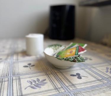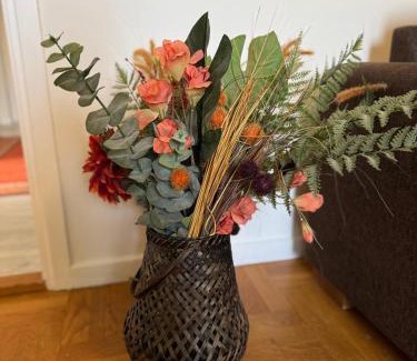 Food & DrinkTea/Coffee makerBathroomBathtub, Bathtub or shower, Toilet, Towels, Body soap, Shower, Toilet paperGeneralIron, Fire extinguisher, Heating, Smoke Alarm, Hardwood or parquet floors, Trash cans, Private entranceKitchenOven, Stovetop, Microwave, Washing machine, Dryer, Coffee machine, Refrigerator, Wine glasses, Electric kettle, Kitchen, Dining tableLiving AreaSofa, Dining area, DeskMedia & TechnologyFlat-screen TVViewGarden view, ViewBedroomLinens, Wardrobe or closetBuilding CharacteristicsPrivate apartment in buildingRoom AmenitiesSocket near the bed |