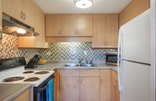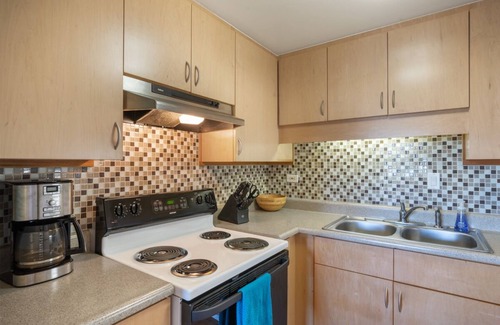 This vibrant and colorful, 1 bedroom, 1 bath condo sleeps 4. There is a Queen Size Bed in the bedroom & a Futon Sleeper Sofa in the living room. You can keep cool with Central Air Conditioning, enjoy the comforts of home with Wi-fi Access, Washer/Dryer, Fully Equipped Kitchen, Two TVs located in the living room and bedroom, (48 inch in living room, 32 inch in bedroom) Elevator Access & Underground Covered Parking.
