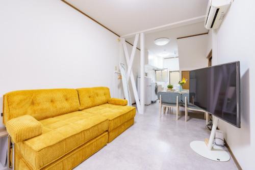 Media & TechnologyFlat-screen TV, TVGeneralAir conditioning, Fire extinguisher, Key access, Heating, Smoke Alarm, Trash cansBathroomBathtub or shower, Bidet, Hairdryer, Toilet, Slippers, Private bathroom, Conditioner, Free toiletries, Towels, Toothbrush, Toilet paper, Shampoo, Body soapKitchenCleaning products, Dryer, Electric kettle, Dining table, Microwave, Kitchen, Refrigerator, Washing machineLiving AreaDining area, Sofa, DeskRoom AmenitiesSofa bed, Drying rack for clothing, Clothes rack, Socket near the bed, Tatami (traditional Japanese flooring)AccessibilityToilet with grab rails |
