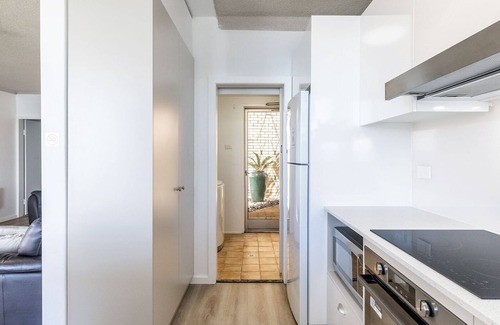 The unit provides an open plan living area with floating floors, ceiling fan for your comfort, Smart TV, and unlimited Wi-Fi. Flowing off the living area is the balcony with gas BBQ facilities and outdoor chairs to sit back and take in the peaceful surrounds. There is a brand new fully equipped modern kitchen with stone benchtops, electric oven and hotplates, microwave, dishwasher, family size fridge/ freezer and Aldi Coffee Pod Machine.