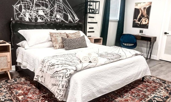 A themed and fun space - you can find tasteful pirate decor just about everywhere! We are also located just 5 mins from the Busch Gardens theme park - the Montu roller coaster can be seen from the back yard!