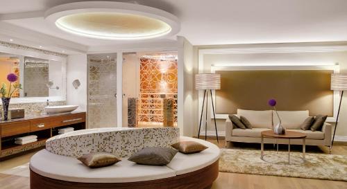 BathroomHairdryer, Private bathroom, Free toiletries, Slippers, Additional bathroom, Conditioner, Body soap, Toilet paper, Toilet, Bathtub or shower, Towels, Shampoo, Guest bathroom, ShowerGeneralIroning facilities, Heating, Hardwood or parquet floors, Trash cans, Safe, Air conditioning, Key card access, Private entrance, Smoke AlarmMedia & TechnologyTV, Cable channels, Flat-screen TV, Radio, Satellite channels, Mobile hotspot device, TelephoneOutdoorsBalconyLiving AreaSofa, Sitting area, DeskBedroomLinens, Wardrobe or closet, Extra long beds (> 6.5 ft)ServicesWake-up serviceAccessibilityUpper floors accessible by elevator, Accessible by elevatorRoom AmenitiesAdapter, Clothes rack, Socket near the bedFood & DrinkBottle of water |