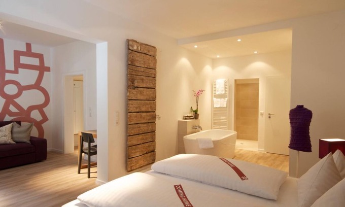 Very spacious suite renovated in 2013 with bedroom, living area, free WiFi & i-pad rental, 24h coffee & tea free, private city garden, flat screen and modern bathroom with partly free-standing bath or shower. Room facilities: heating, wooden floor, wardrobe, toilet, bathroom, bath or shower, hairdryer, make-up mirror, TV, telephone.