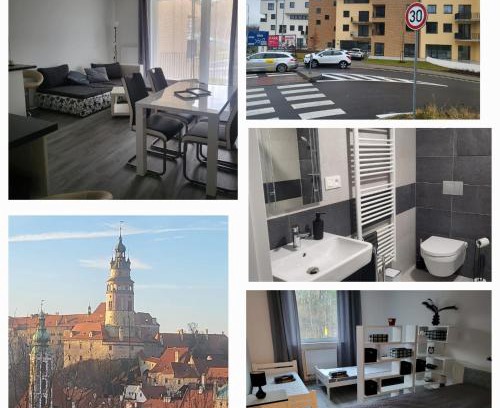 Krumlov apartman offers accommodations in Český Krumlov, 15 miles from České Budějovice Train Station and 15 miles from Black Tower. The apartment, set in a building dating from 2024, is 14 miles from Přemysl Otakar II Square and 15 miles from Main Bus Station České Budějovice. There's a terrace and guests have access to free Wifi, free private parking, and an electric vehicle charging station. The apartment consists of 1 bedroom, a living room, a fully equipped kitchen with a dishwasher and a coffee machine, and 1 bathroom with a shower and slippers. Towels and bed linen are featured in the apartment. The property has an outdoor dining area. Popular points of interest near the apartment include Castle Český Krumlov, Main Square in Český Krumlov, and Rotating Amphitheatre. Ceske Budejovice Airport is 14 miles away.