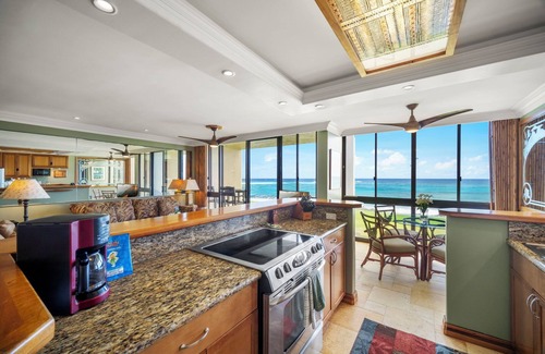 Enjoy the magnificent sunsets or watch the surfers or sea turtles from the lanai or go snorkeling at the beach right out front.