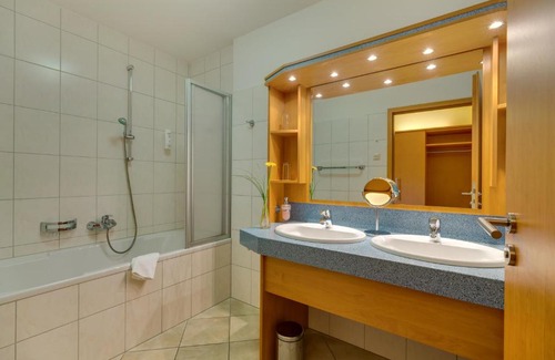 Located in Bad Schlema, this hotel offers free WiFi and free use of the sauna, gym and billiard room. Kurhotel Bad Schlema offers a beautiful view of the spa park and the Martin Ebert music fountain. The attractive and spacious rooms feature modern furnishings with a flat-screen satellite TV, mini-bar and a private bathroom including a shower, hairdryer and bathrobes. A selection of dishes ranging from classic to modern are served in the 2000Acht restaurant with panoramic garden. Guests also enjoy a discount on the admission price at the Actinon health spa, 984 feet away. This includes indoor and outdoor therapy pools with radon and brine, a swimming pool, sauna, spa area, physiotherapy and a salt cave. Kurhotel Bad Schlema has a car park that is free of charge for guests.