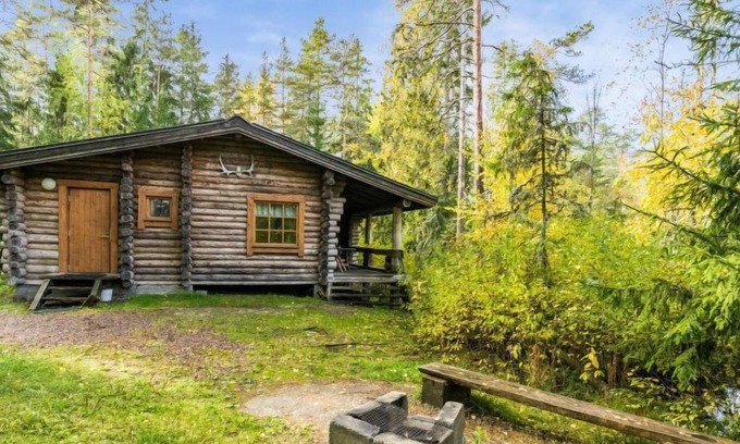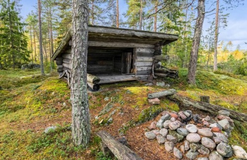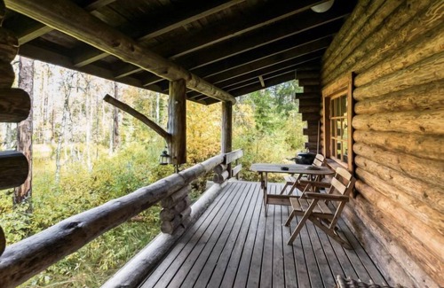 Log cottage on shore of forest pool, very peaceful location, neighbours not visible.