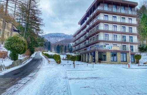 Kurort Kozubnik Apartament 33 Wellness &SPA is located in Porąbka, just 19 miles from Auschwitz and 18 miles from Sports and Recreation Centre Oświęcim. The property is around 22 miles from Energylandia Amusement Park, 7.1 miles from Conference Centre "Kocierz", and 14 miles from Bielska BWA Gallery. There's an outdoor fireplace and guests can use free Wifi and free private parking. Providing a balcony and mountain views, the condo hotel includes 1 bedroom, a living room, flat-screen TV, an equipped kitchenette, and 1 bathroom with an a bath or shower. Towels and bed linen are provided in the condo hotel. The accommodation is non-smoking. There is an on-site restaurant, coffee shop, and bar. For guests with children, the condo hotel provides an indoor play area and an outdoor play equipment. Guests at Kurort Kozubnik Apartament 33 Wellness &SPA can enjoy skiing nearby, or make the most of the garden. Bielsko-Biala Railway Station is 14 miles from the accommodation, while Dębina Conference Centre is 15 miles away. John Paul II International Kraków–Balice Airport is 44 miles from the property.