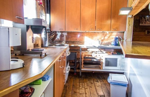 Log cabin 1997, really big living room (approx. 60 sq m), in the center of the living room there is a barbeque area, another living room with bunk bed, 2 sofa beds = 4 extra beds, shallow upstairs sleeping alcove (avg. height 1.7 m) with a double bed, low loft ( avg. height 1.3 m) with a double bed. The washing room with toilet and two showers, also separate toilet, sauna (wood-burning stove).