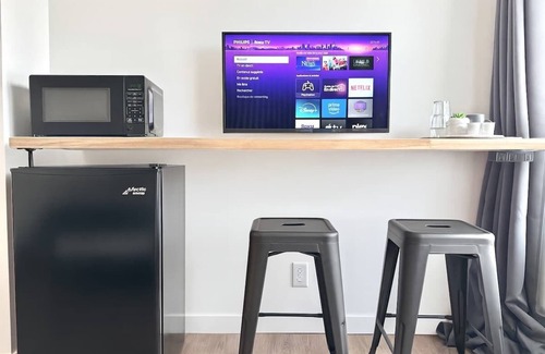 Located in a new building in the heart of downtown Lévis, this small, modern, hotel-style studio is perfect for a comfortable stay. It includes a small refrigerator with freezer, a microwave, and a coffee area for your gourmet breaks. Ideal for a convenient and cozy getaway, close to all amenities!