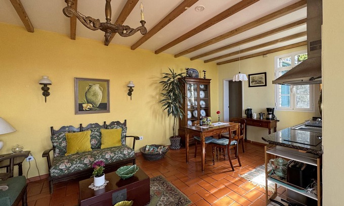 Lírios do campo is an apartment in "Quinta das hortensias", a small resort in rural settlement caracterized by a particular architectural, historical and artistic value. It is composed by 4 apartments in two separate houses set in a beautiful tropical garden. Lírios do campo is located on the ground floor and enjoys a spectacular view of the ocean. The apartment has a bedroom, a spacious windowed bathroom, a living room with kitchenette, very bright and comfortable.