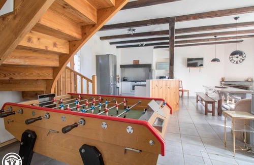 In the heart of the village of Avèze, this 17th century House presents: on the ground floor an open room kitchen dining with fireplace fireplace open (€10 package logs), a sauna and a foosball table, 1 bedroom with 1 bed 140 x 190, a bathroom, a WC and a laundry room. On 1st floor: living room, 1 bedroom with 1 bed 160 x 200, 1 bedroom with 1 bed 140 x 190, 1 bedroom with bunk beds, 1 bathroom with bath and shower and a separate toilet. Heating and electricity included. Beautiful outdoor space. Shops and services in 7, 5km. Numerous recreational activities: hiking, heritage, plan of water at the turn of Melanie