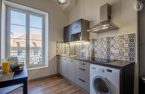 Apartment located on the first floor of a building including the owner's accommodation on the ground floor and a second accommodation on the 1st floor. Entrance, kitchen, lounge - living room (160x200 cm sofa bed), bathroom (walk-in shower) with WC, 1 bedroom (1 160x200 cm double bed). Swimming pool open from June to September from 9 a.m. to 7 p.m. Free parking in a closed courtyard. Sheets + bathroom linen included. Closed bicycle storage room in the owners' garage. Bright apartments with large volumes and high ceilings. Large parks of several hectares landscaped bordering the vineyards of the estate. Swimming pool and terraces with a dining area with garden furniture and barbecue. Clear view of the summit of Granier and the Apremont vineyards.